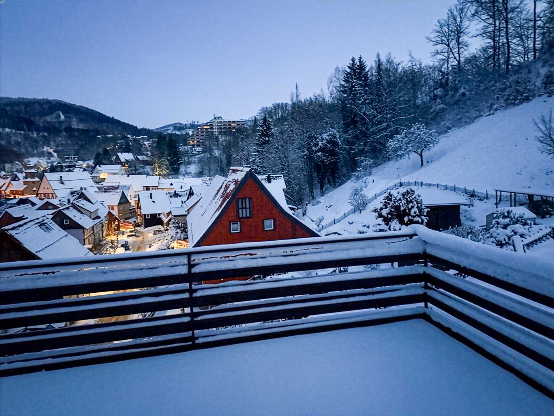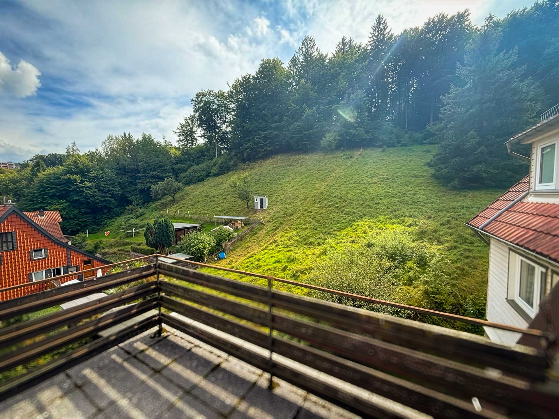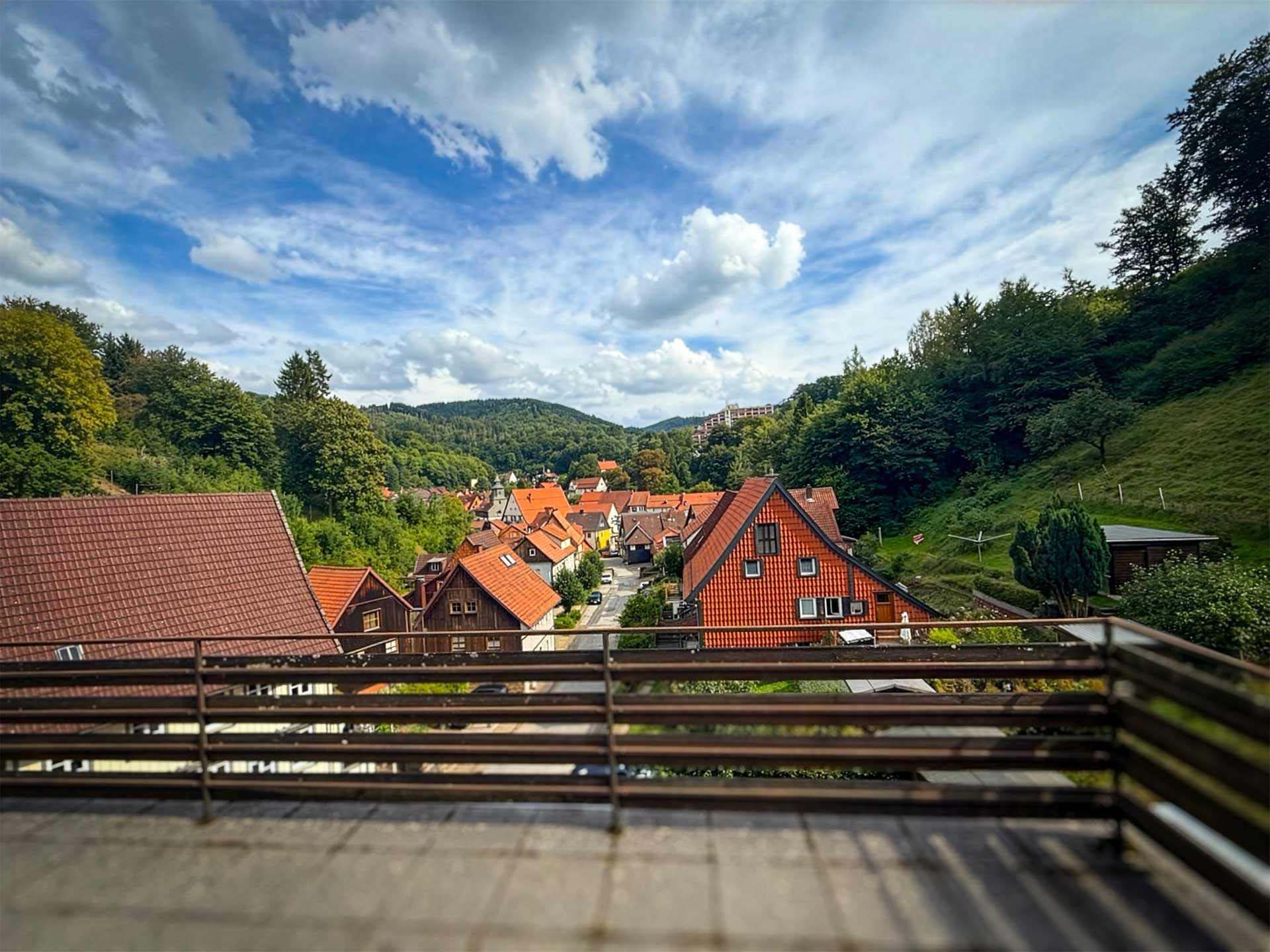 Zwei Terrassen mit schöner bis sehr schöner Aussicht über Bad Grund und die Natur.